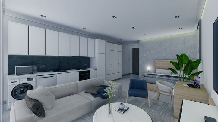 Our studio apartments offer a modern, efficient layout that maximizes space while ensuring comfort and style. With a focus on sleek furnishings and thoughtful storage solutions, each studio provides an inviting and functional living area tailored for solo living.